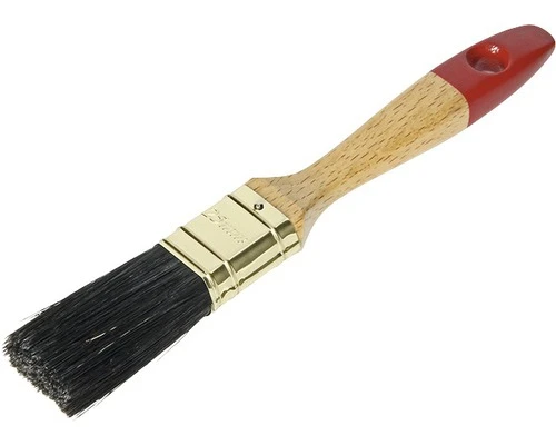 Deze Diamond classic platte verfkwast dubbeldik met zwart haar, messing ring en geverniste houten steel is geschikt voor synthetische lakken