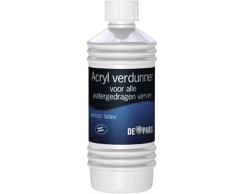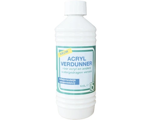 De acrylverf verdunner is een additief voor watergedragen verven zoals latex-, emulsie- en acrylverf voor binnen en buiten.