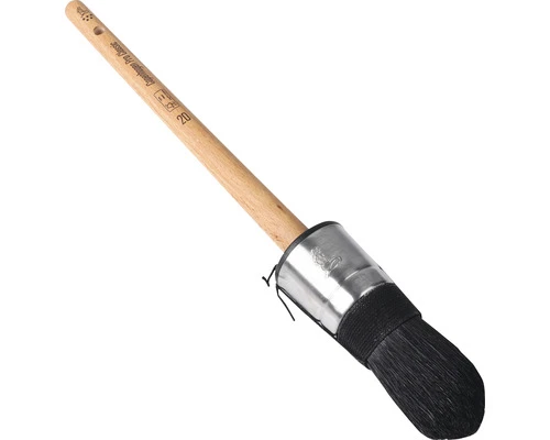 Patentpuntkwast met gewaxte beukenhouten FSC steel voorzien van een katoenen woeling en een RVS bus. De haren zijn vervaardigd uit 90% tops zwart Chinees varkenshaar. Deze authentieke kwast is ook uitermate geschikt voor stuggere verfsoorten. Omdat de haren bol gezet zijn is de kwast ook geschikt voor besnijden en precisiewerk op kleinere oppervlakken, zoals kozijnen en randen. Te gebruiken voor de nieuwe type verven zowel VOC-arme lakken en verf op oplosmiddelenbasis.