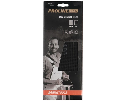 De Proline Gold schuurgaas stroken zijn voorzien van een scherp siliciumcarbide mineraal voor langdurige prestaties. Het schuurgaas heeft een open raster wat voorkomt dat het product snel volloopt. De vellen kunnen aan beide zijden worden gebruikt. Tevens kan het product nat en droog worden gebruikt. Als het raster volloopt, kun je het schuurgaas uitspoelen of uitkloppen, zodat het schuurgaas weer schoon is voor gebruik.