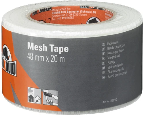 Tape met roosterstructuur voor het stabiliseren van vulmateriaal en het overbruggen van voegen en naden bij gipsplaten.