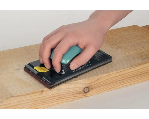 Handschuurblok, universeel te gebruiken voor oppervlakken en rechte hoeken. Met een 2-componentengrip voor krachtige werkzaamheden zonder vermoeidheidsverschijnselen.